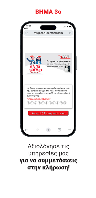 Φέτος τις γιορτές, αξιολόγησέ μας στο ACS Mobile App, για να κερδίσεις το δώρο της χρονιάς!