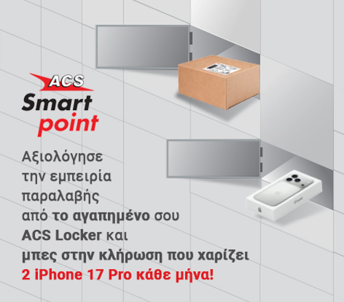 Από 5 Μαρτίου έως 30 Νοεμβρίου 2026, η ACS σου δίνει την ευκαιρία να κερδίσεις ένα από τα 2 iPhone 17 Pro που κληρώνονται κάθε μήνα, απλά αξιολογώντας την εμπειρία σου από τις «My favourite ACS Locker» παραλαβές σου μέσα από το ACS Mobile App.