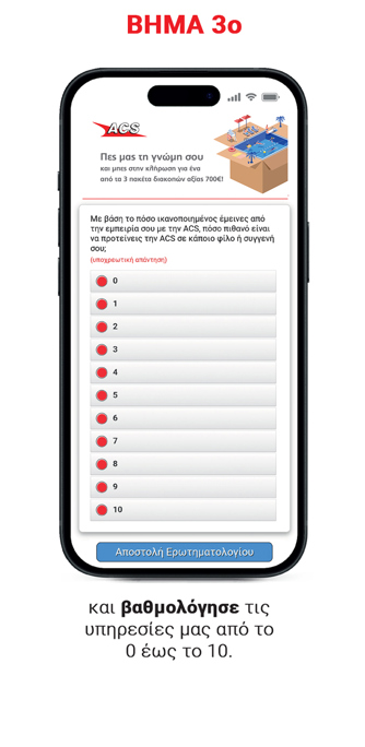 Κατέβασε το ACS Mobile App, αξιολόγησε τις υπηρεσίες μας και μπες στην κλήρωση για ένα από τα 3 πακέτα διακοπών αξίας 700€!
